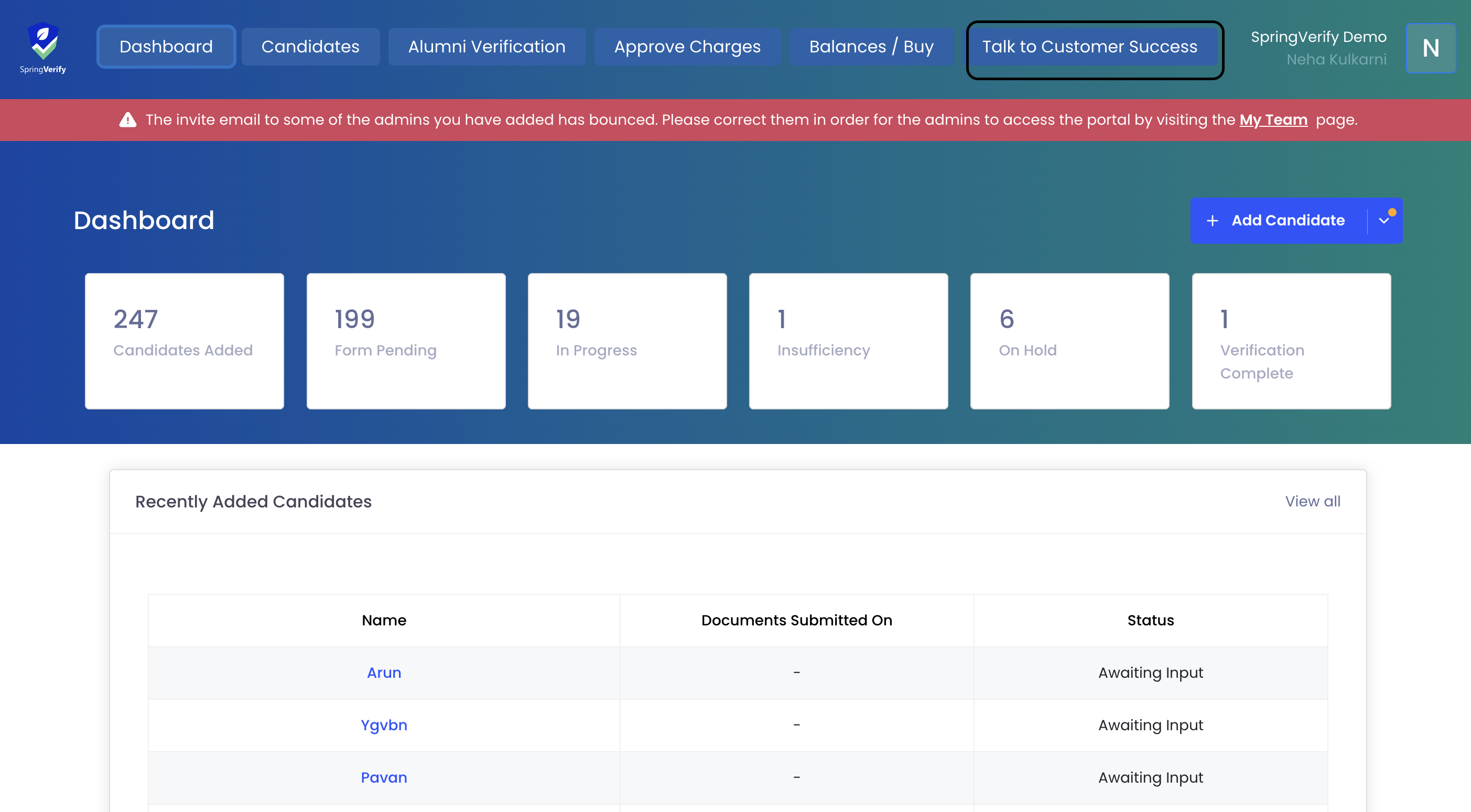 SpringVerify Dashboard Related FAQs