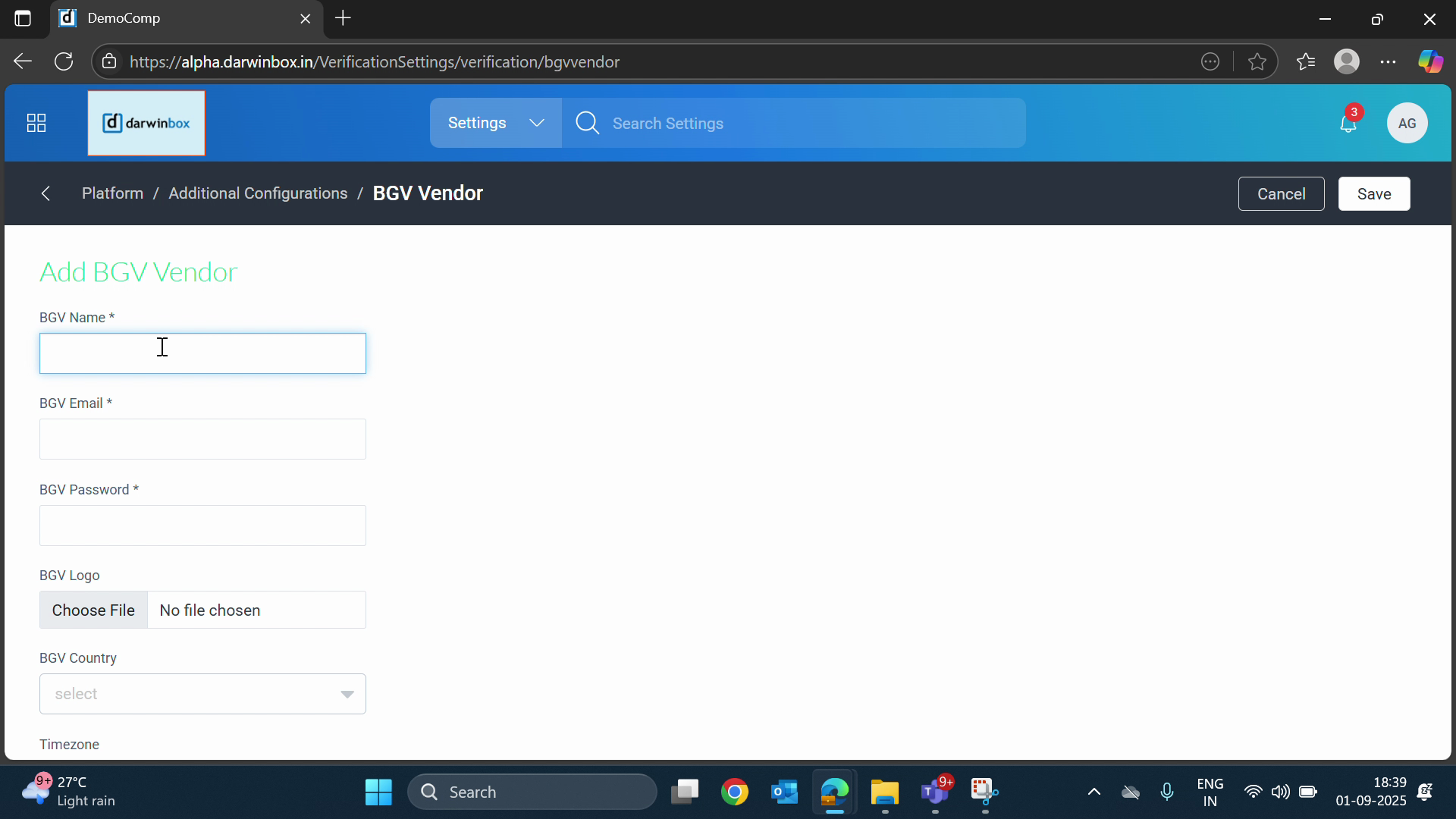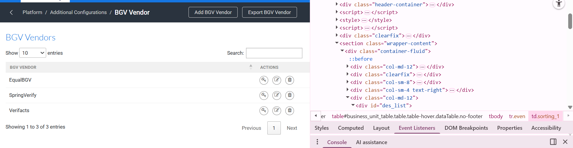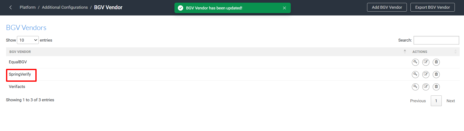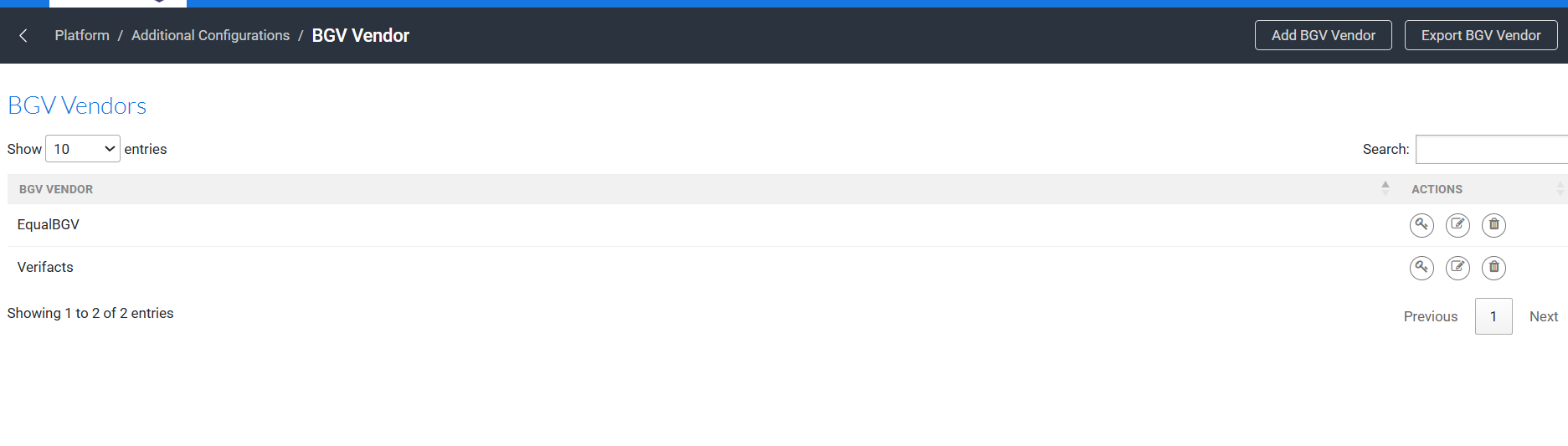 3: Click on Add BGV Vendor. The system will then redirect you to the BGV vendor page.