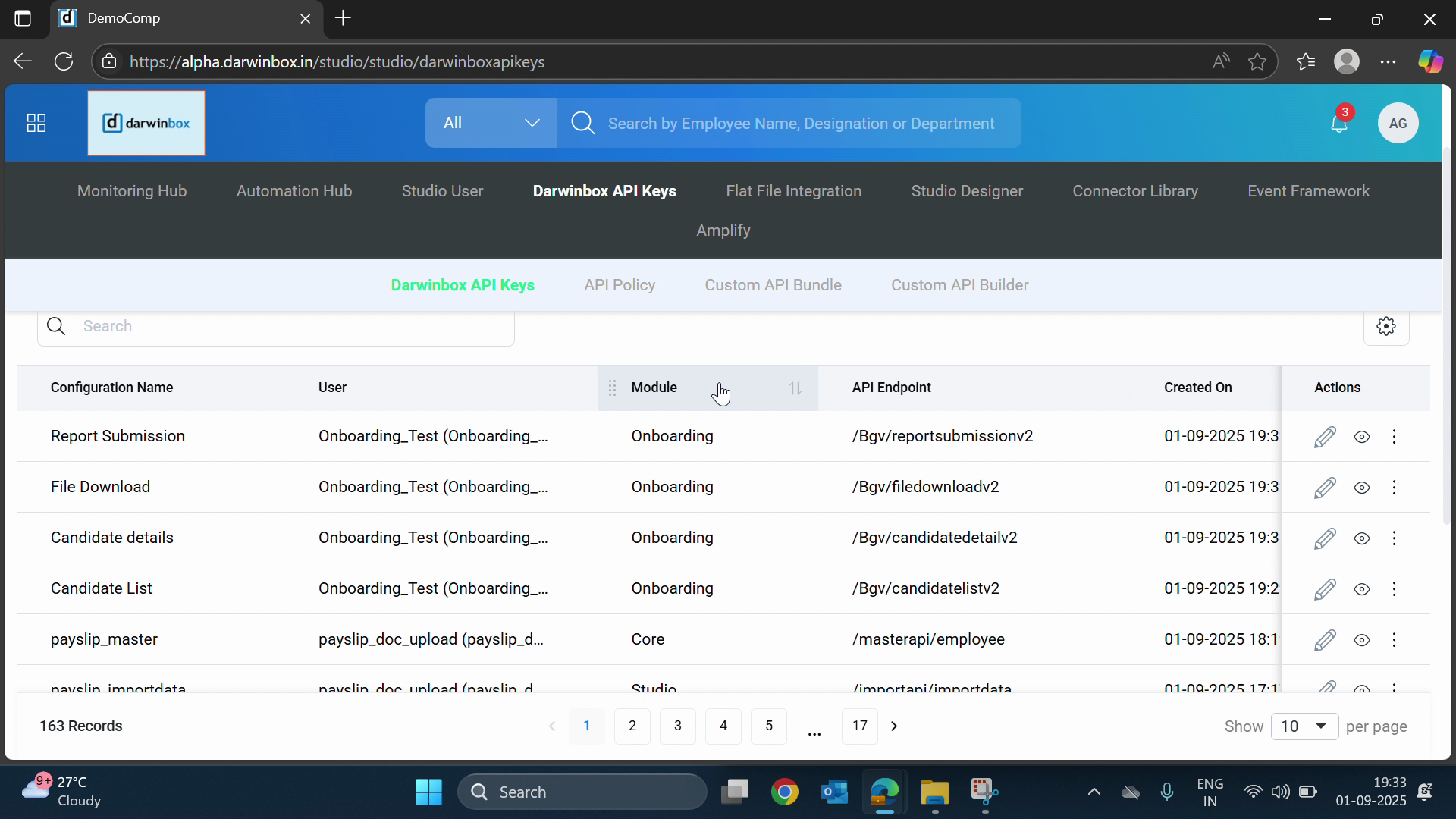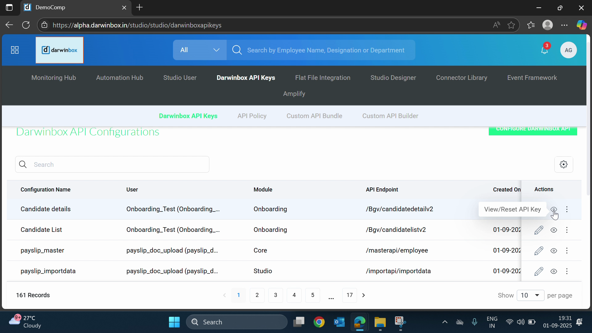16: Click on the view icon and share this API key with SpringVerify. This API allows the SpringVerify to download files uploaded by the candidate.