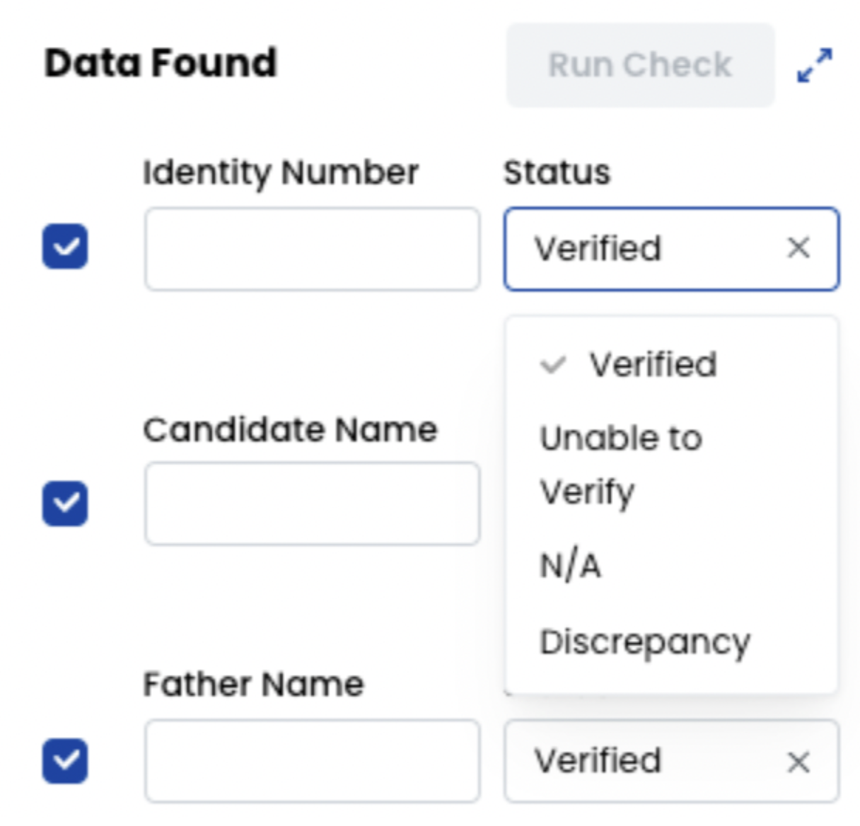 If the check status was Unable to Verify and the data found statuses were Unable to Verify and Verified, these values will remain the same after regrading.