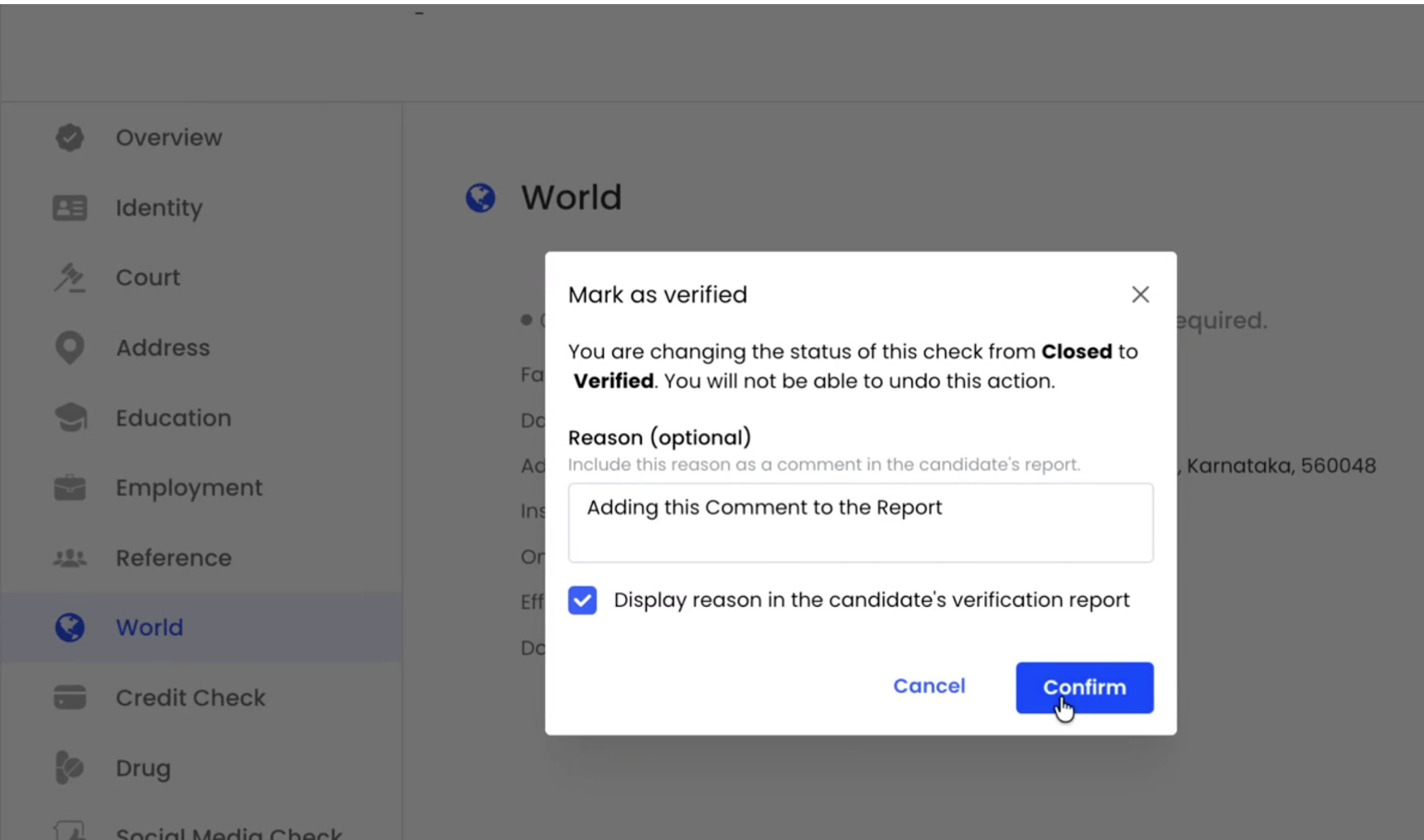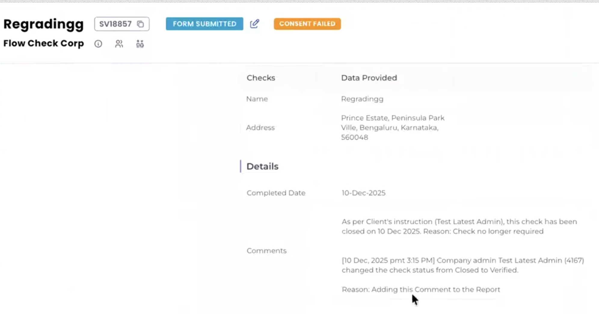This article explains when and how Company Admins can regrade a background verification check to Closed or Verified, along with permissions and system behavior.