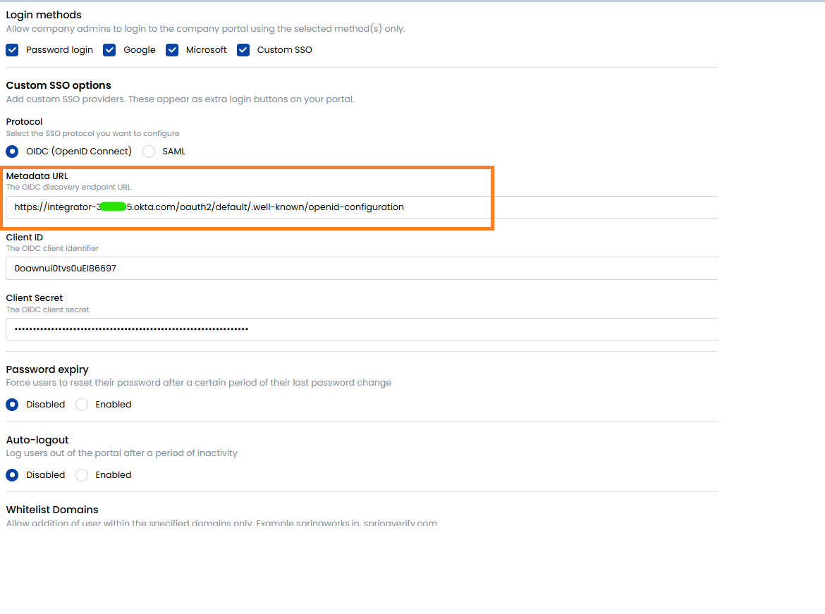 Metadata / Discovery URL - This is also known as the OIDC Discovery Endpoint.