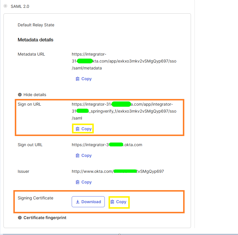 You now need to enter the SAML details from Okta into the SpringVerify form: