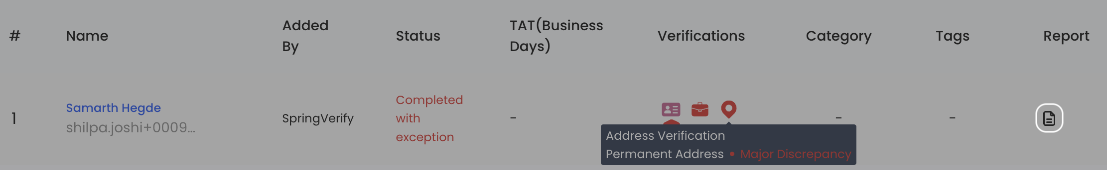 - Completed with Exception - Candidates whose verification is complete but has exceptions exceptions noted