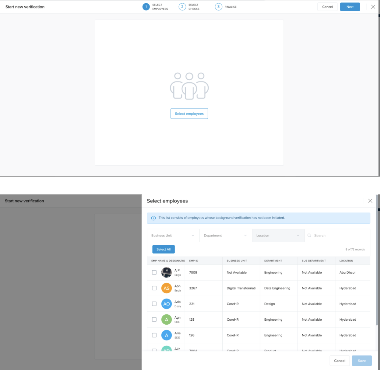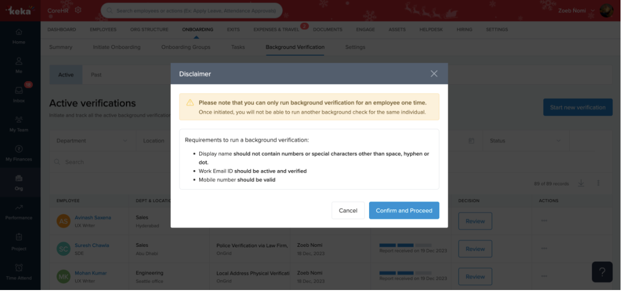 Step 5: Once you click on "Confirm and Proceed," you will have to select employees for whom you wish to initiate BGV.