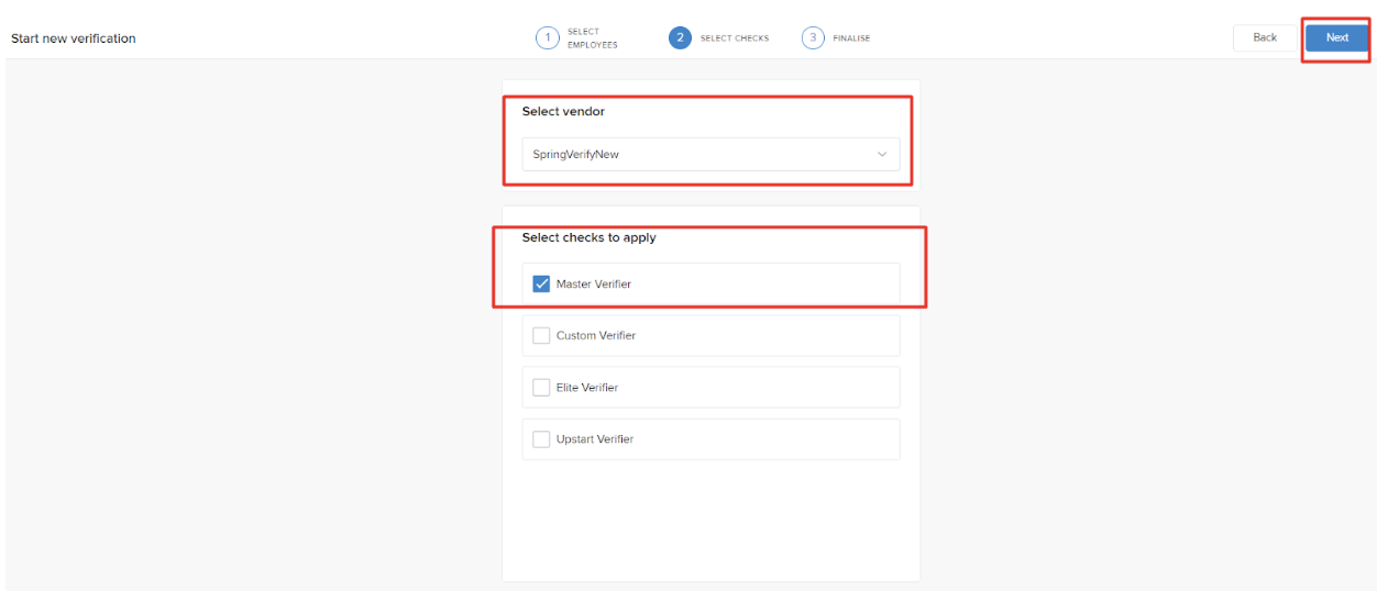 Step 7: Select the vendor "SpringVerify" and choose the package, then click "Next".