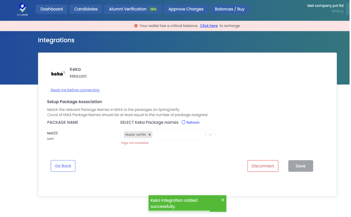 Congratulations! You have successfully integrated Keka with SpringVerify. Bravo 👏