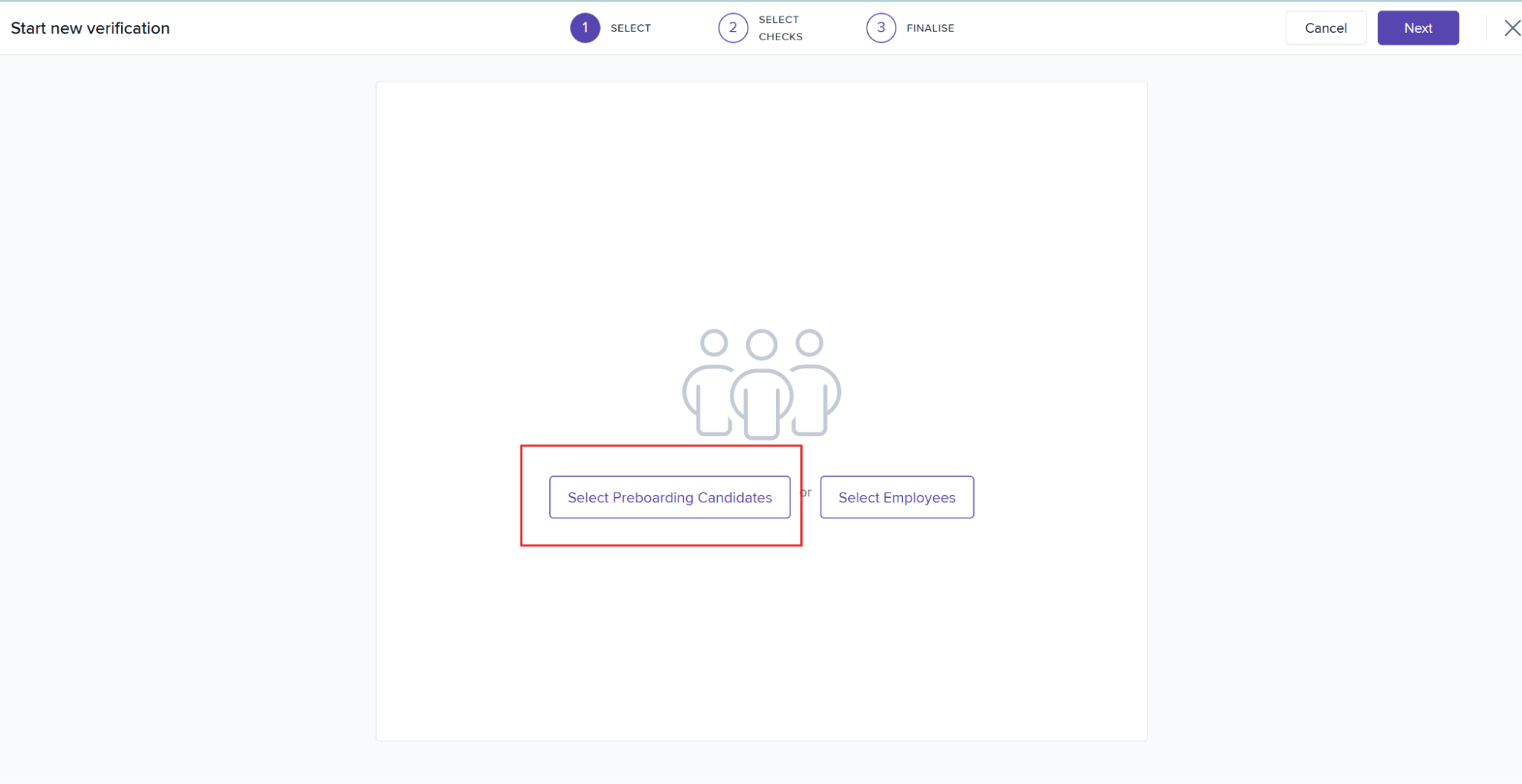 Step 6:Now, click on "Select Preboarding Candidates" to add employees to the verification process.