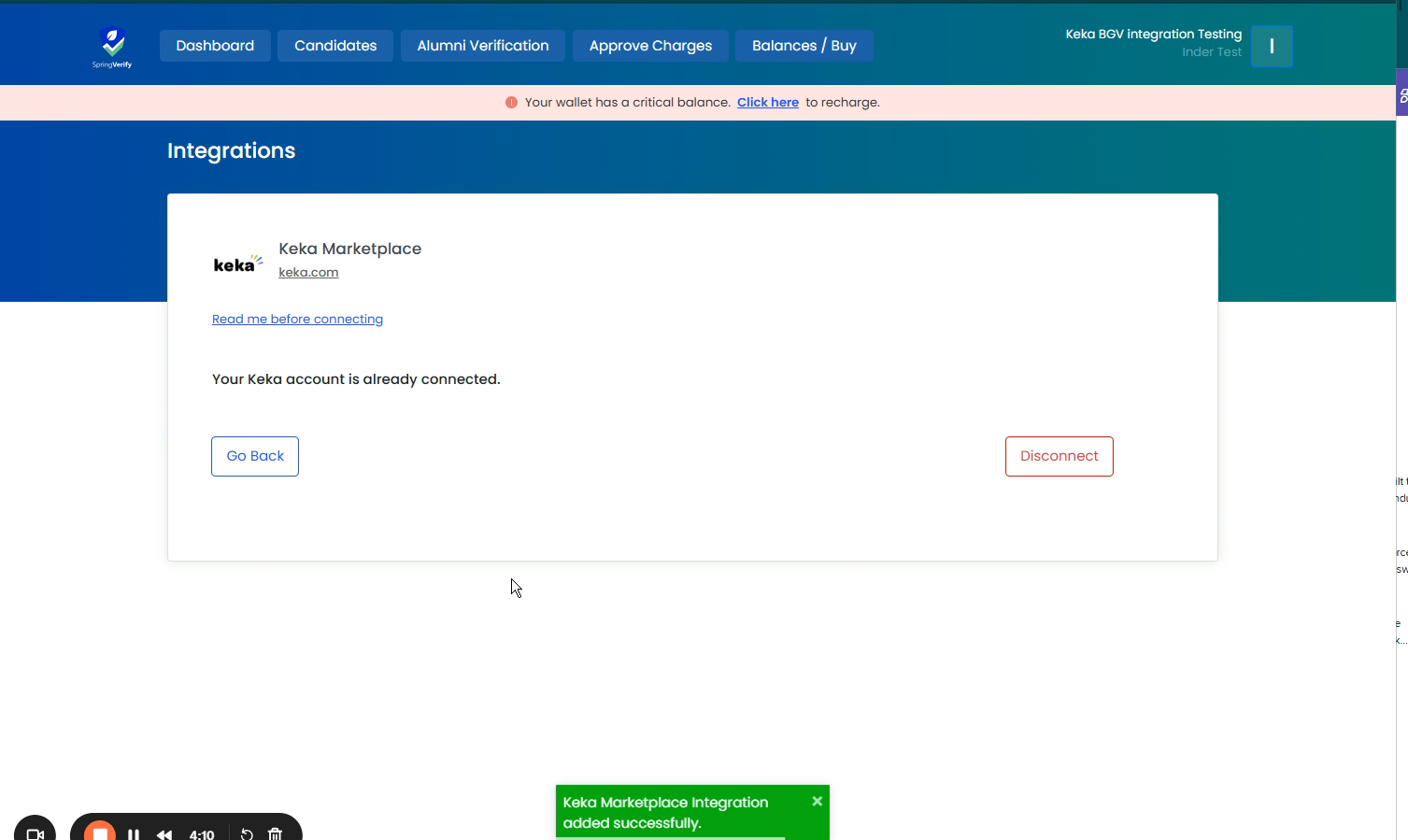 Congratulations! You have successfully integrated Keka with SpringVerify. Bravo 👏
