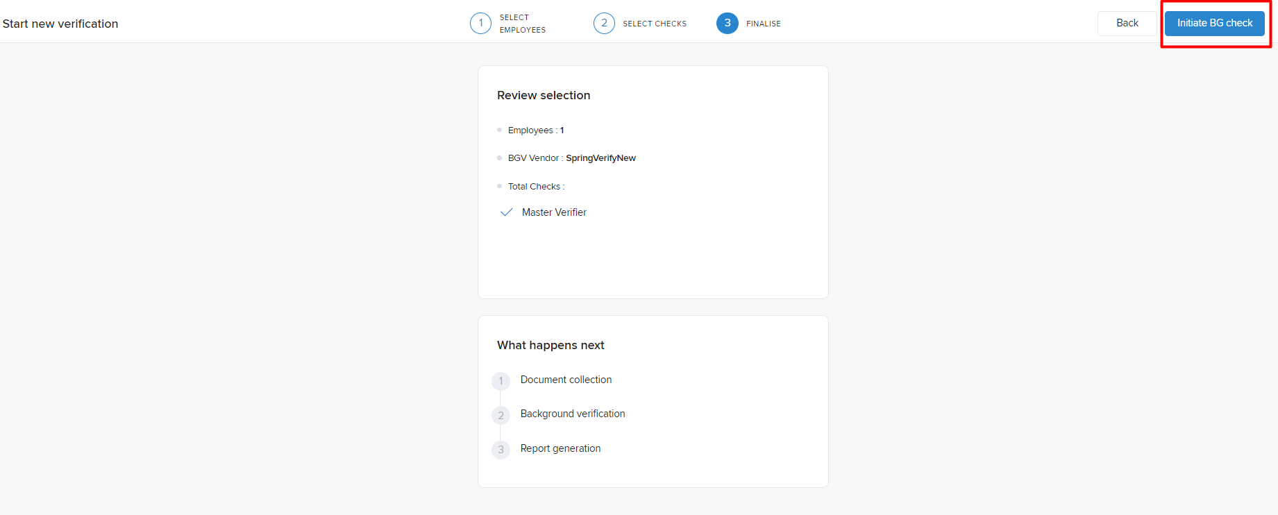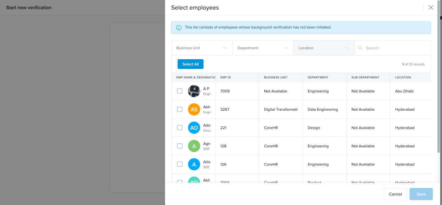 Step 5: Once you click on "Confirm and Proceed," you will have to select employees for whom you wish to initiate BGV.