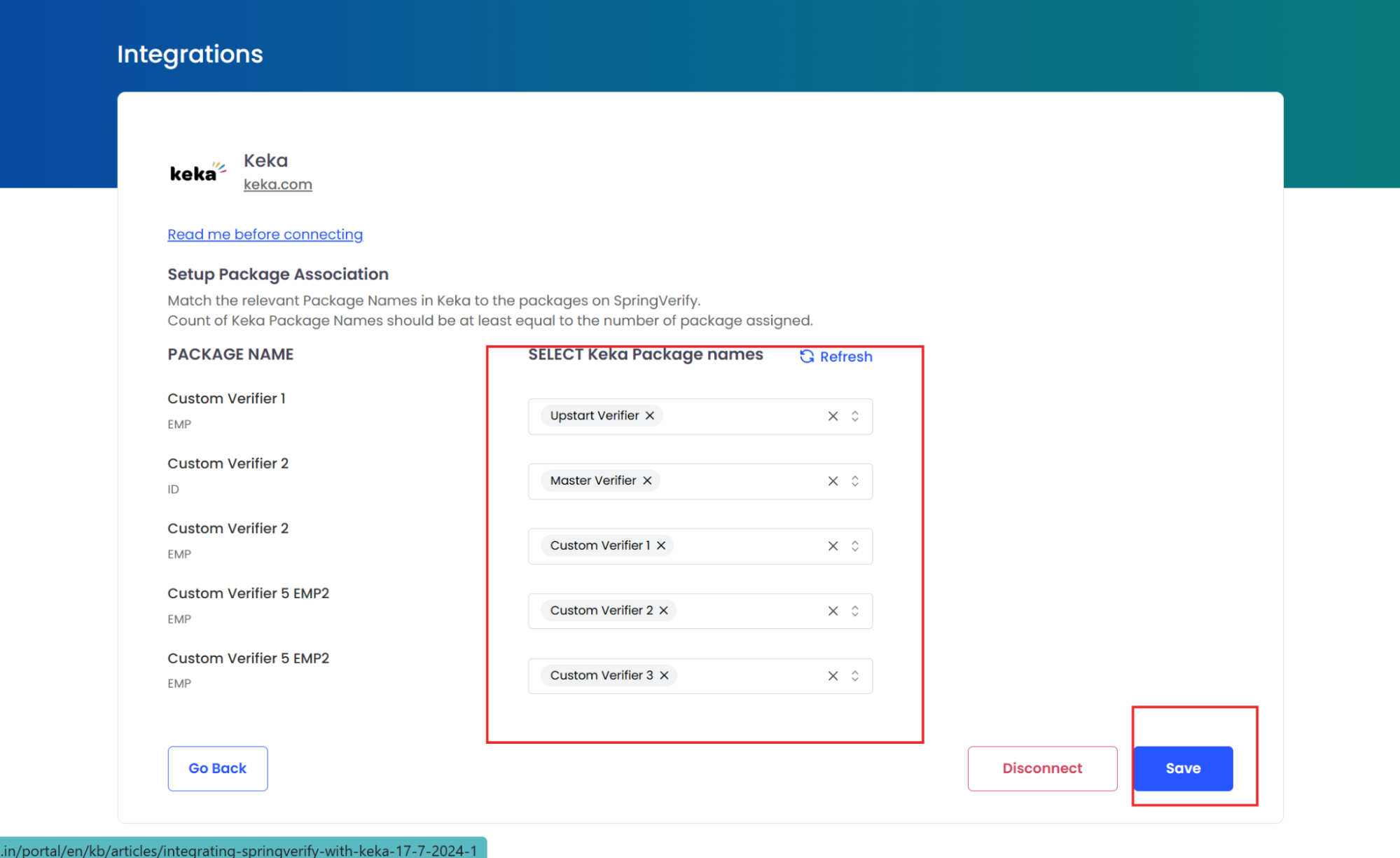 4. Now, select the packages applicable to your organization and click on 'Save' to integrate SpringVerify as your background verification partner