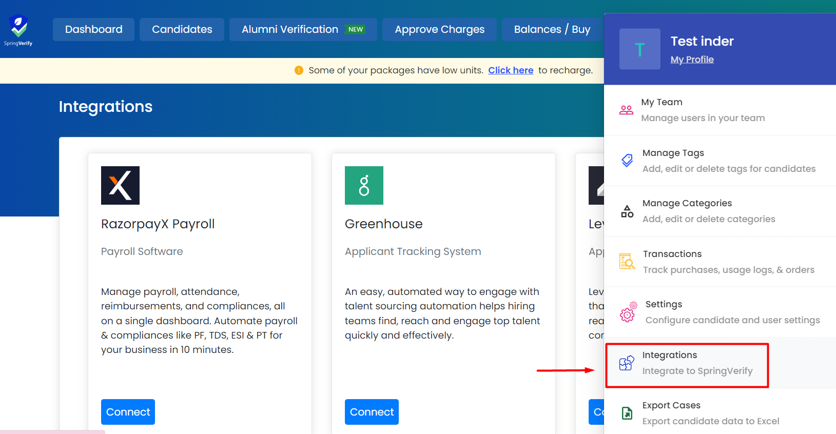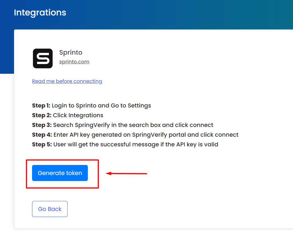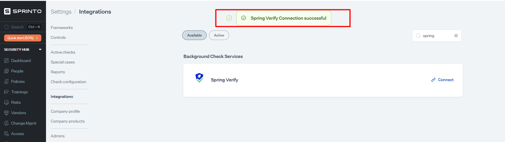 With SpringVerify and Sprinto Integration, clients can now initiate Integration by generating access tokens from SpringVerify and integrating it with Sprinto. Once the Integration is enabled, clients can sync their candidates’ Background verification reports from SpringVerify to Sprinto