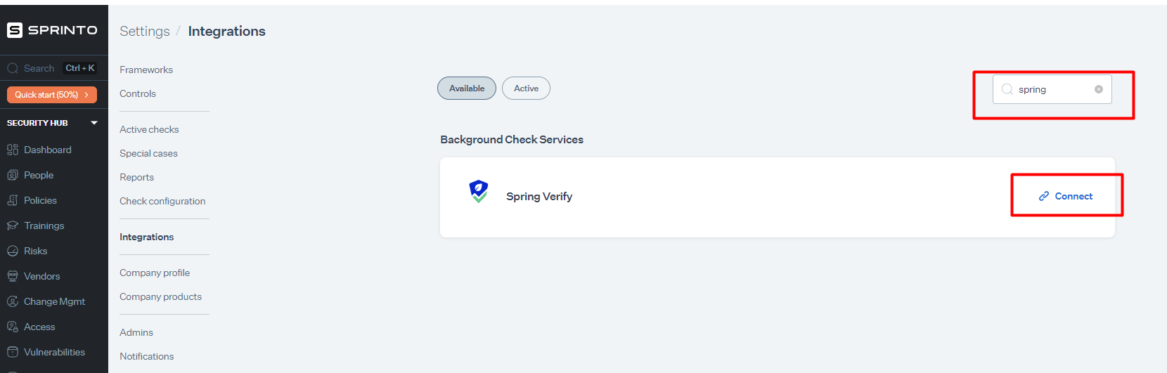 3. Search for SpringVerify in the search box and click on ‘Connect’.