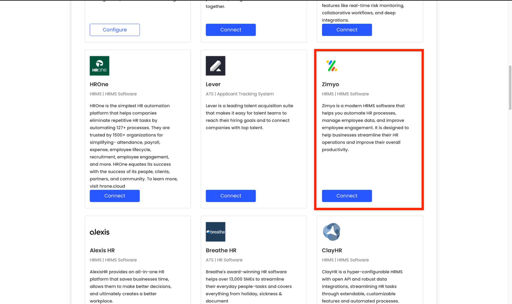 - Navigate to the Zimyo platform, log in to your account, and navigate to All Integrations.