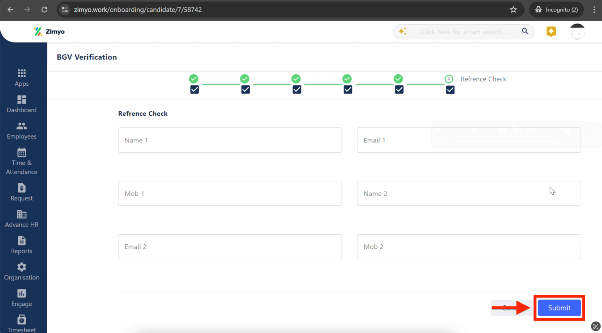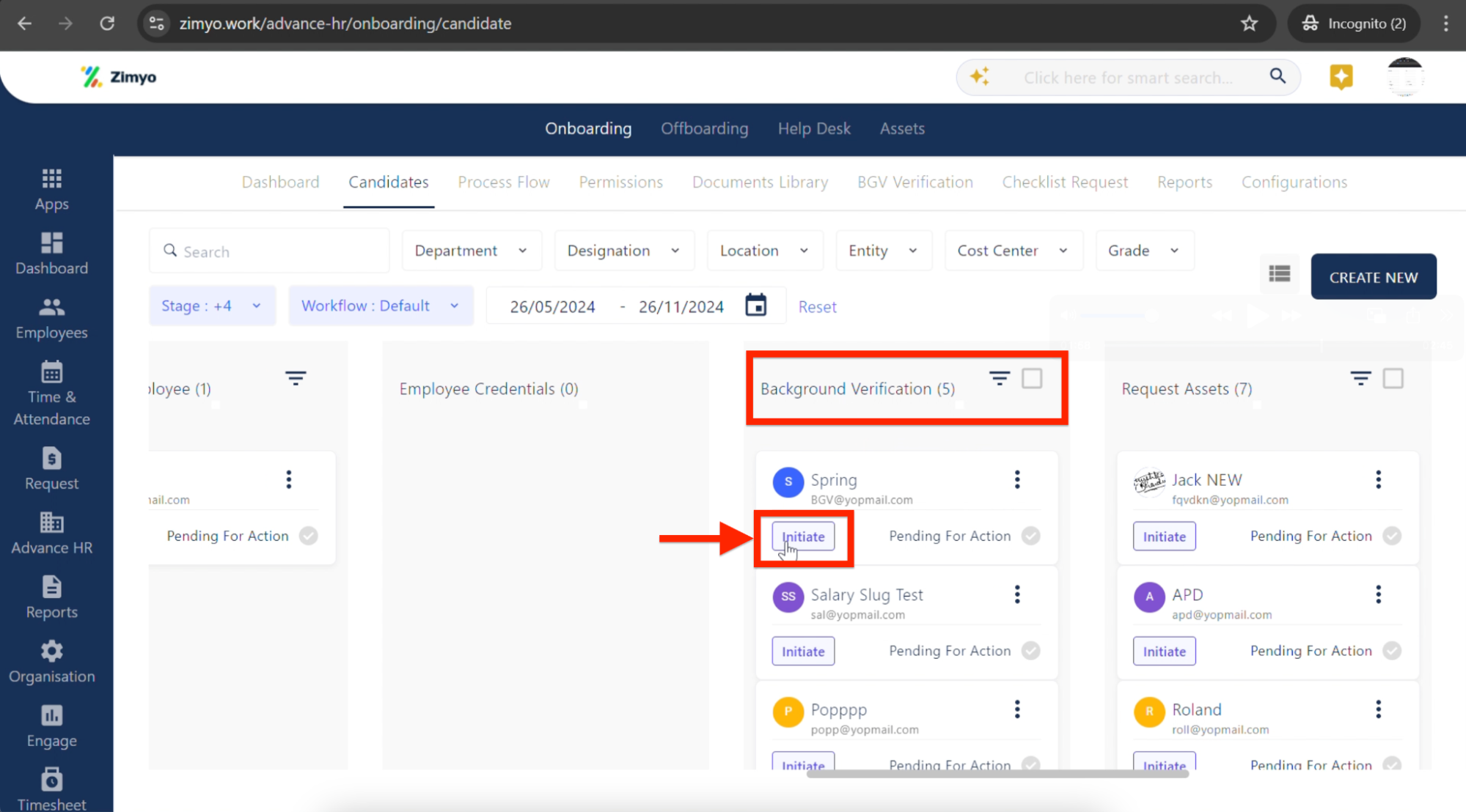 Steps to Initiate the Background Verification for a Candidate on Zimyo