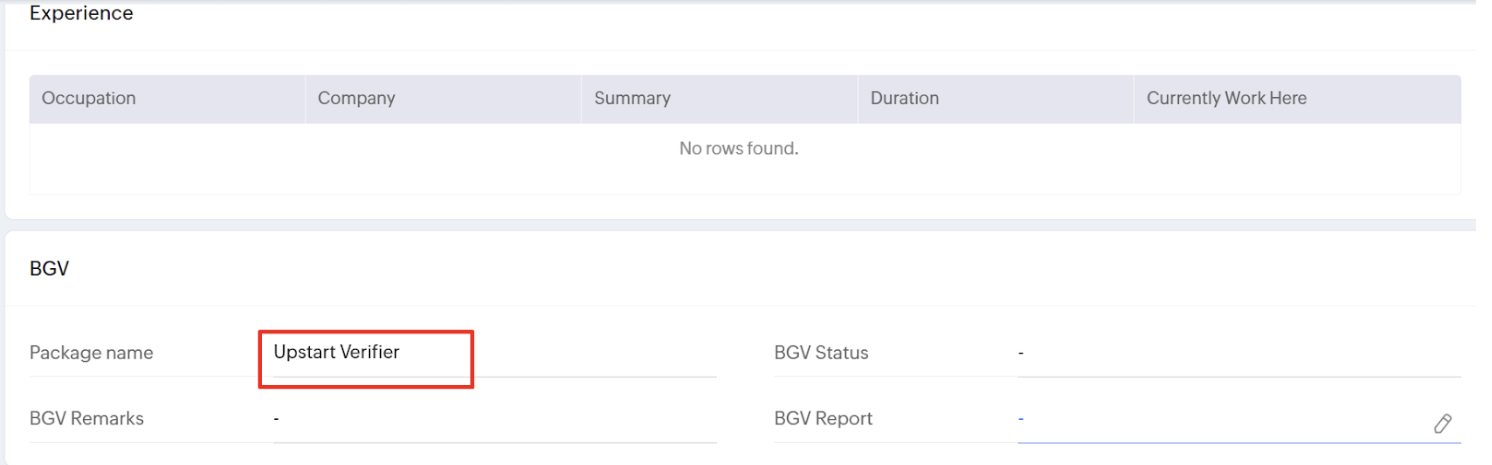 For example, the "Upstart Verifier" package can be assigned to this candidate on Zoho People.