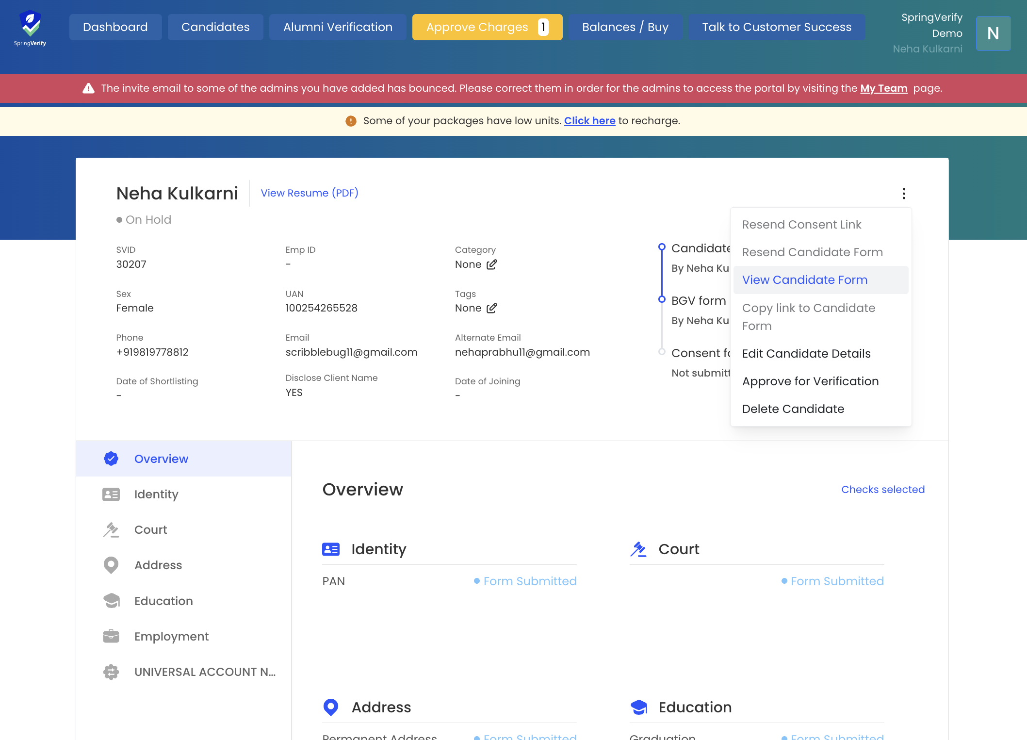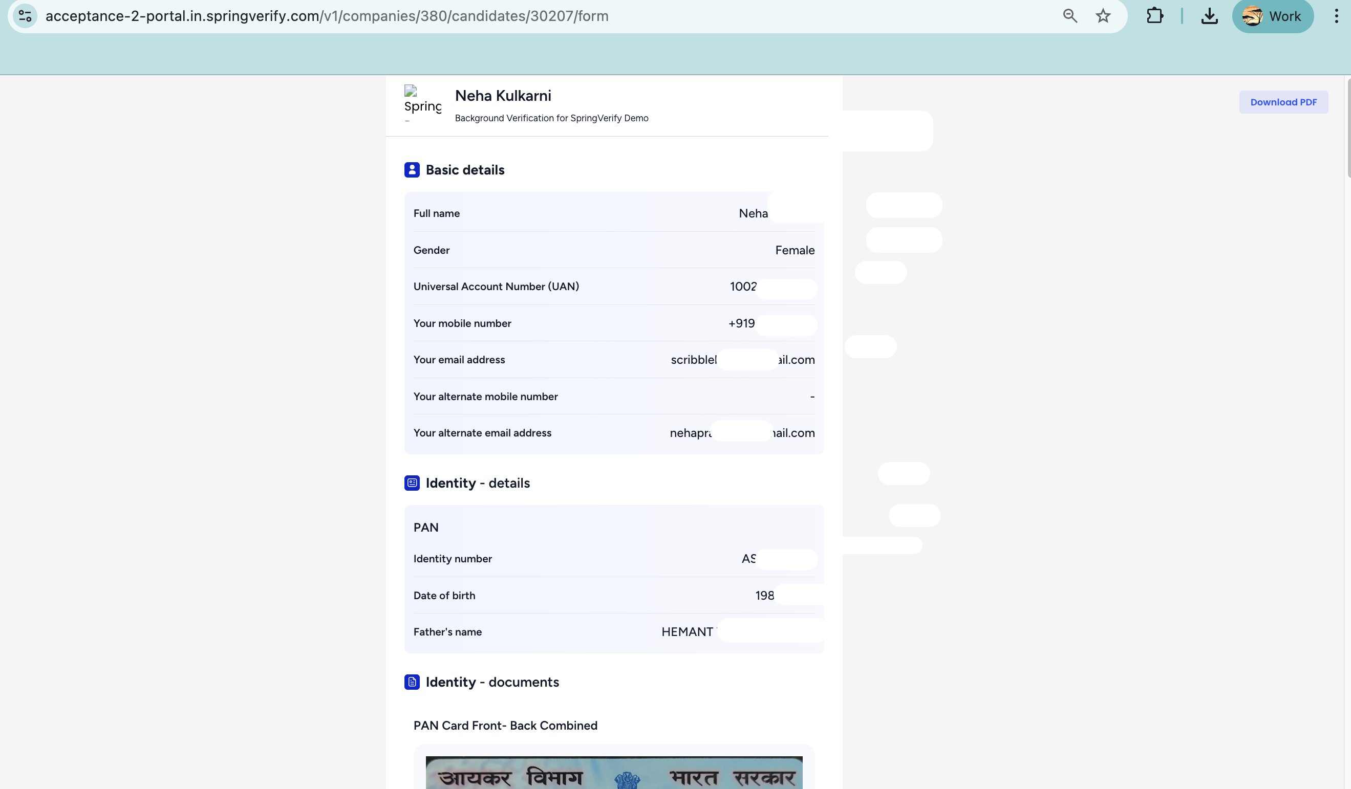 As a Company Admin (CA), you can now view and download the background verification (BGV) forms submitted by candidates in their original state. Once a candidate submits their BGV form, authorized users can access the form exactly as it was submitted and download it as a PDF for record-keeping purposes.